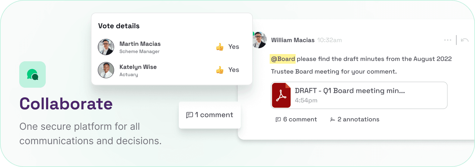 Manage repetitive tasks asynchronously, ensuring they’re only ‘upgraded’ to a slot at the Board meeting when in need of a live discussion